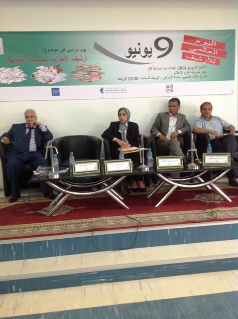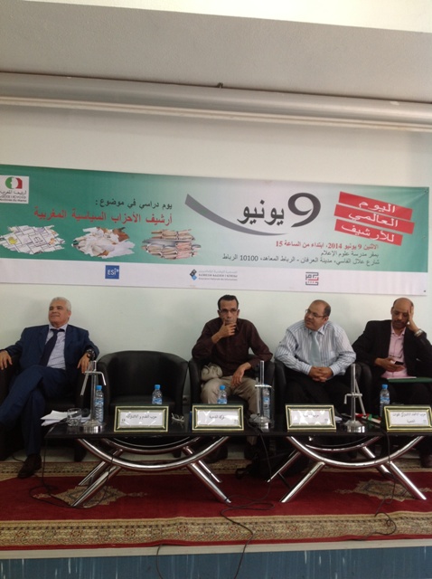 صور تذكارية لليوم الدراسي المنظم بمناسبة اليوم العالمي للأرشيف في موضوع: “أرشيف الأحزاب السياسية المغربية” نشرت بواسطة:ABDELMALEK NASSIRI بتاريخ11:12 فيوسائط متعددة تعليق واحد صور تذكارية لليوم الدراسي المنظم بمناسبة اليوم العالمي للأرشيف في موضوع: “أرشيف الأحزاب السياسية المغربية”، الاثنين 09 يونيو 2014 بمقر مدرسة علوم الإعلام بالرباط. شاركها ! tweet