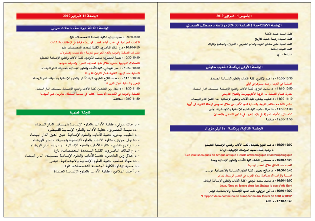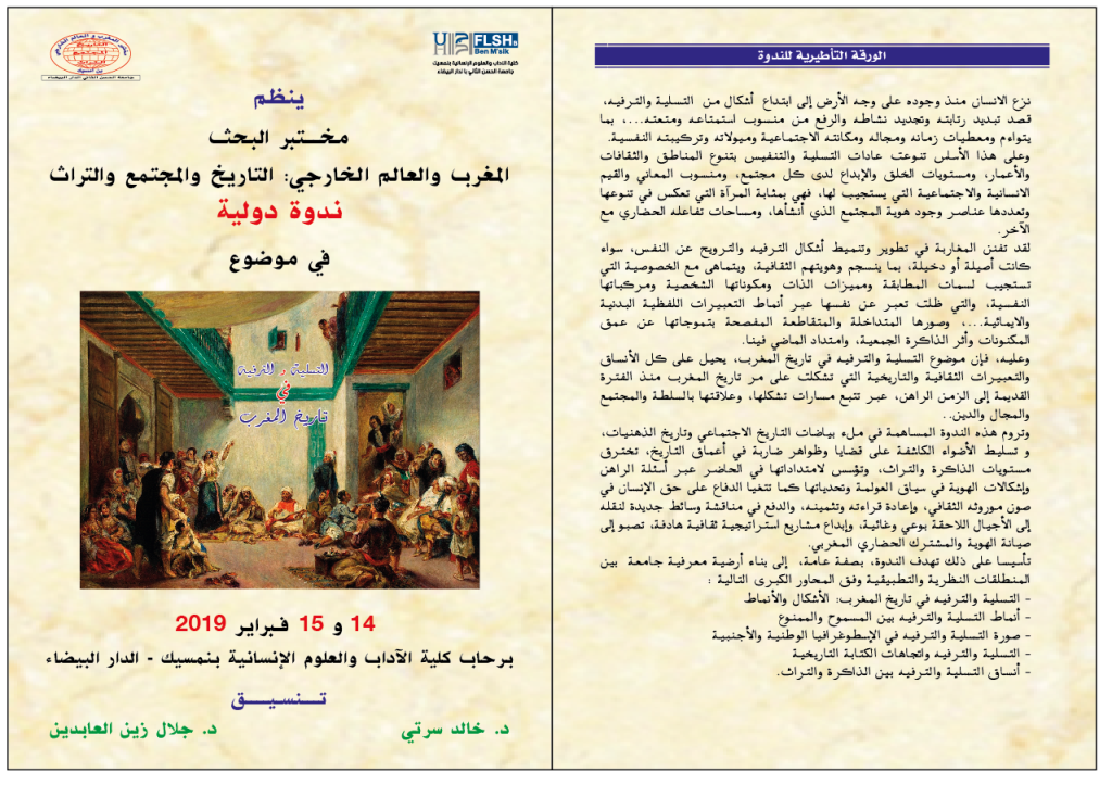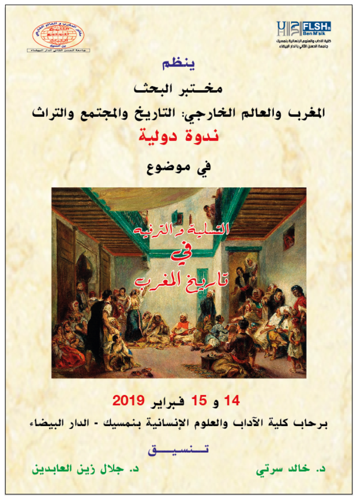 أنت هنا: الرئيسية / أخبار التاريخ والمؤرخين / ينظم مختبر البحث المغرب والعالم الخارجي: التاريخ والمجتمع والتراث، ندوة دولية في موضوع: التسلية والترفيه في تاريخ المغرب