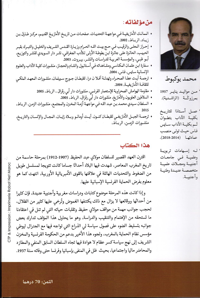 Vous êtes ici: Accueil / News des publications / جديد الإصدارات: الأستاذ محمد بوكبوط، السلطان مولاي عبد الحفيظ والجنرال ليوطي، سياسة شد الحبل ومعركة كسر العظام، 1912 – 1937.