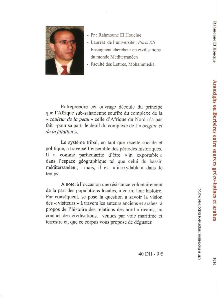 Rahmoune El Houcine, Amazighs ou Berbères entre les sources gréco-latines et arabes. Publié par: ABDELMALEK NASSIRI le 10:10 dans News des publications Laisser un commentaire Partager ! tweet