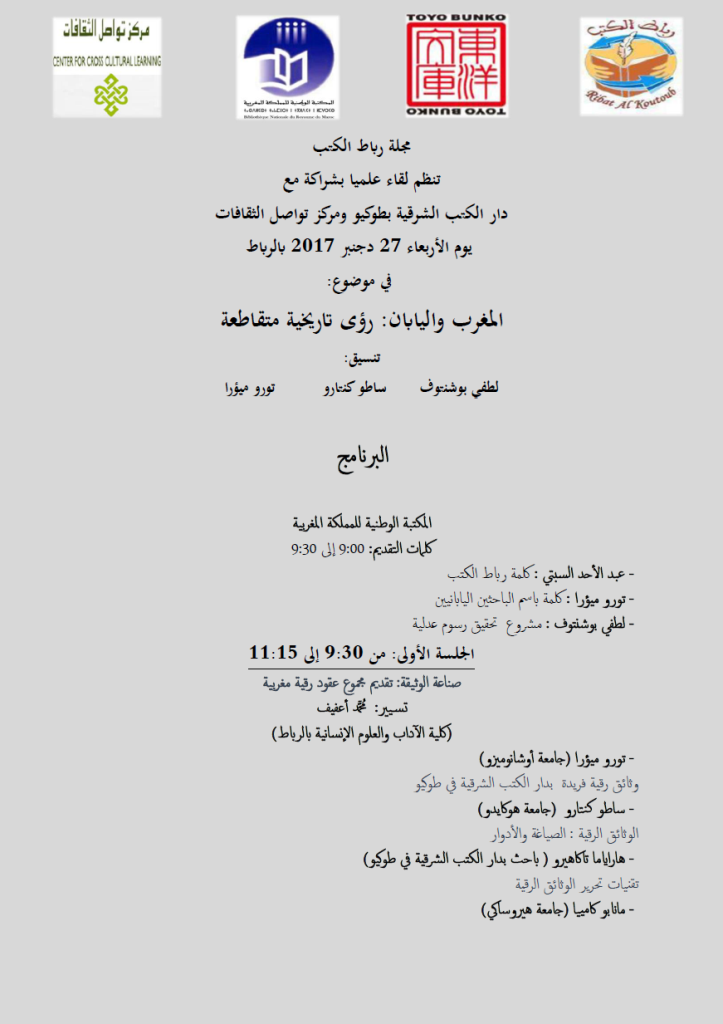 Vous êtes ici: Accueil / News de l'histoire et des historiens / تنظم مجلة رباط الكتب، بشراكة مع دار الكتب الشرقية بطوكيو ومركز تواصل الثقافات بالرباط لقاء علميا في موضوع: المغرب واليابان: رؤى تاريخية متقاطعة.