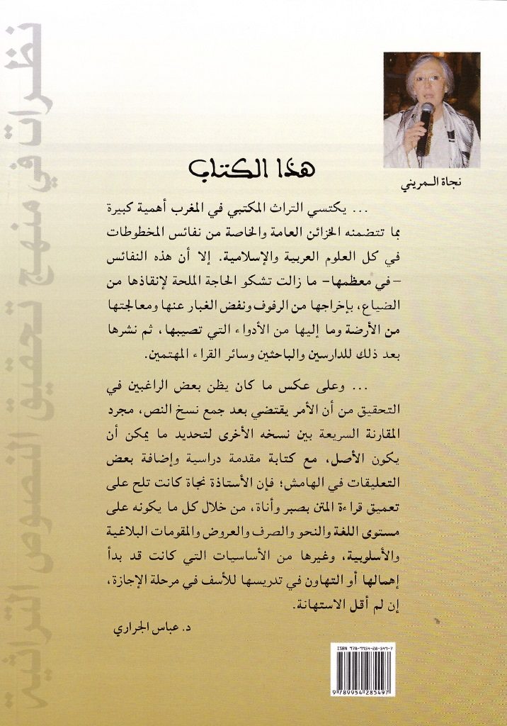 الأستاذة نجاة المريني، نظرات في منهج تحقيق النصوص التراثية. Publié par: ABDELMALEK NASSIRI le 11:00 dans News des publications Laisser un commentaire Partager ! tweet