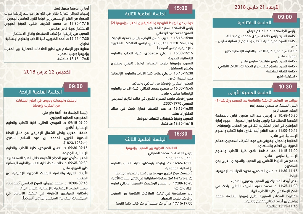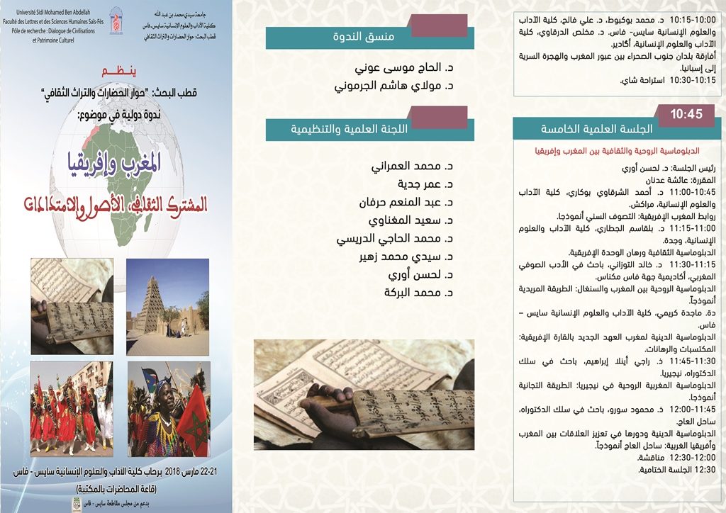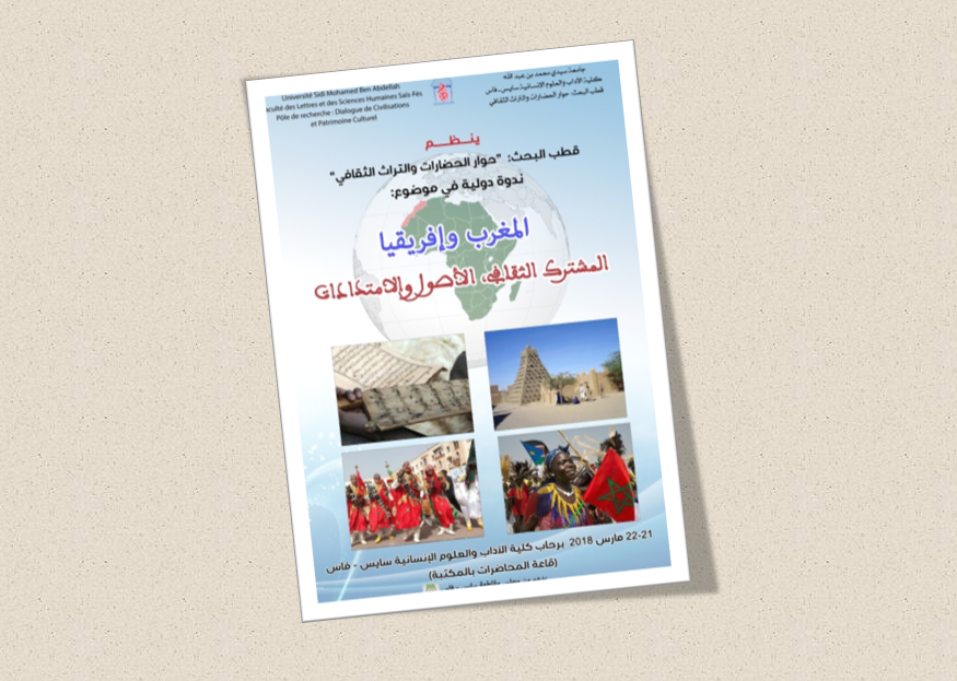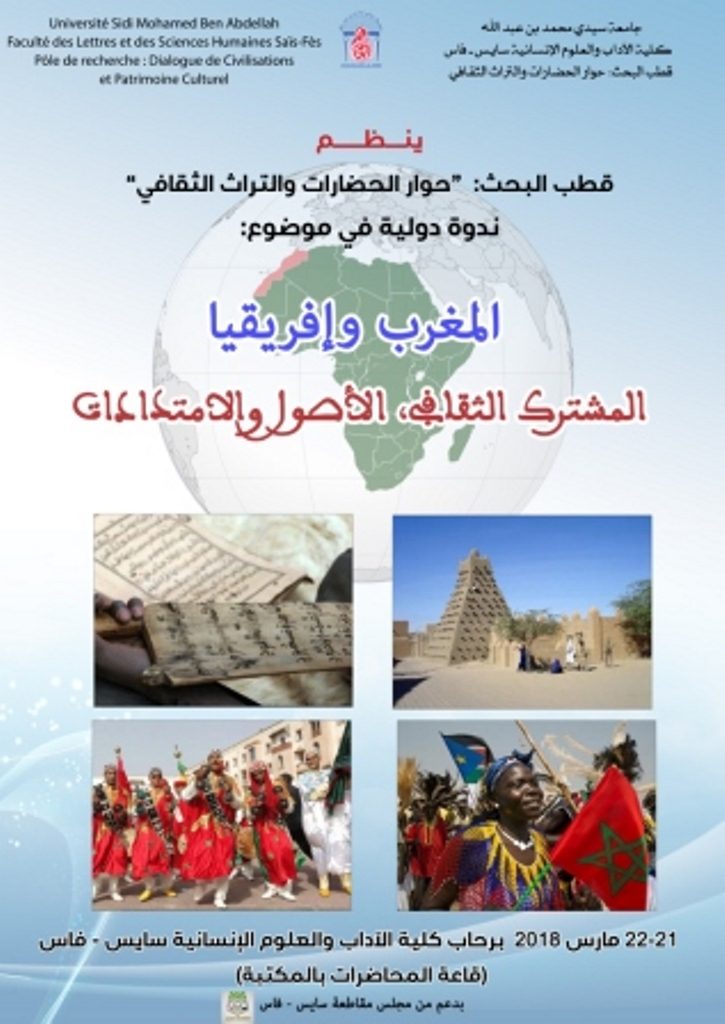 Vous êtes ici: Accueil / News de l'histoire et des historiens / ينظم قطب البحث “حوار الحضارات والتراث الثقافي” ندوة دولية في موضوع: المغرب وإفريقيا، المشترك الثقافي: الأصول والامتدادات يومي الأربعاء والخميس 21 و22 مارس 2018 برحاب كلية الآداب والعلوم الإنسانية سايس فاس، قاعة المحاضرات بالمكتبة على الساعة التاسعة صباحا.