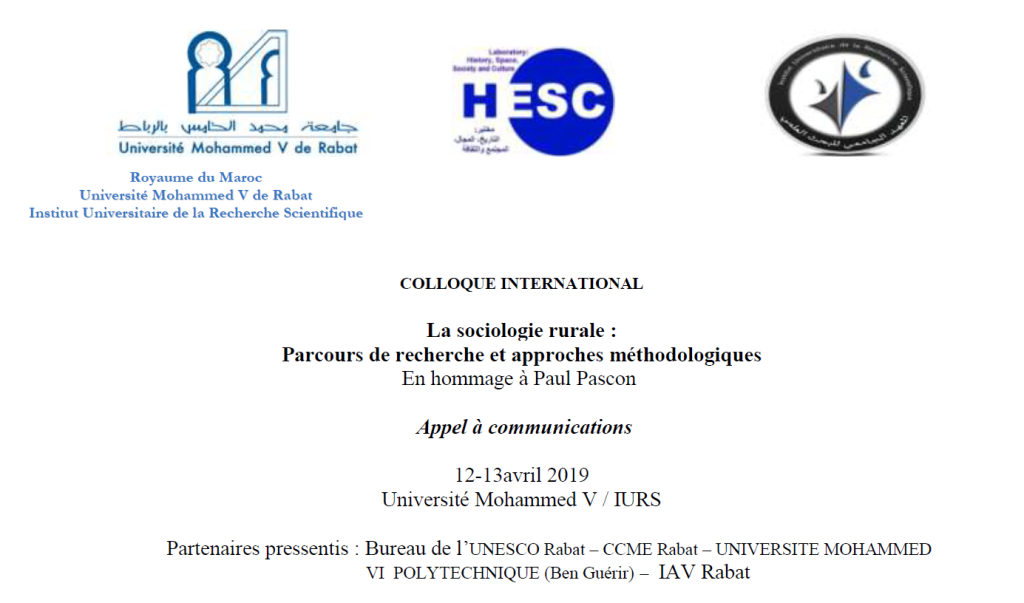 Vous êtes ici: Accueil / Archives du site / Colloque International, La sociologie rurale : Parcours de recherche et approches méthodologiques, en hommage à Paul Pascon.