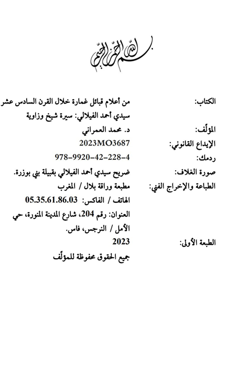 أنت هنا: الرئيسية / جديد الإصدارات / جديد الإصدارات: الأستاذ محمد العمراني، من أعلام قبائل غمارة خلال القرن السادس عشر، سيدي أحمد الفيلالي: سيرة شيخ وزاوية. 2023.