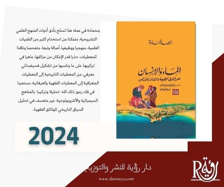 جديد الإصدارات: الأستاذ سعيد بنحمادة: الماء والإنسان، حفريات في الطبيعة والثقافة بالأندلس، عن دار رؤية للنشر والتوزيع، 2024.
