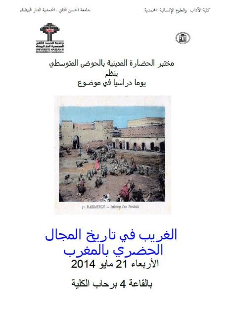 مختبر الحضارة المدينية بالحوض المتوسطي ينظم يوما دراسيا في موضوع: الغريب في تاريخ المجال الحضري بالمغرب نشرت بواسطة:ABDELMALEK NASSIRI بتاريخ15:00 فيأرشيف مواد الموقع اضف تعليق لتحميل برنامج اللقاء العلمي يرجى النقر على الرمز: شاركها ! tweet