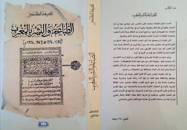 إصدار جديد للأستاذة لطيفة الكندوز: الطباعة والنشر بالمغرب (1282 – 1376هـ/ 1865 1956م، منشورات دار أبي رقراق، الرباط، 2014.