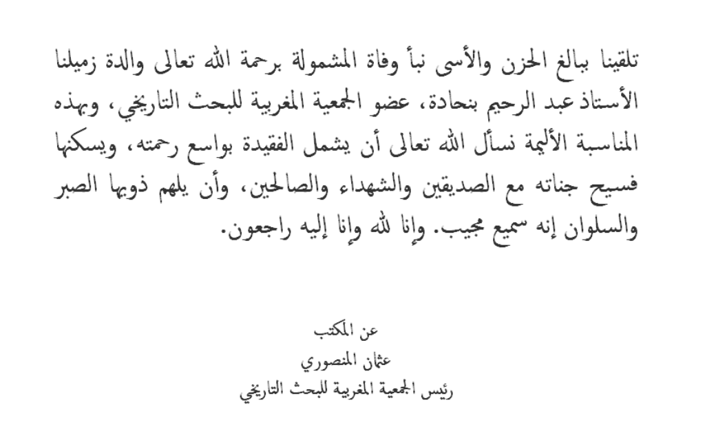 تعزية في وفاة المرحومة والدة الأستاذ عبد الرحيم بنحادة نشرت بواسطة:ABDELMALEK NASSIRI بتاريخ22:06 فيجديد الموقع, مع الباحثين تعليق واحد لتعزية الأستاذ عبد الرحيم بنحادة: الهاتف: 0661909307 البريد الإلكتروني: abderrahimbenhadda@yahoo.fr شاركها ! tweet
